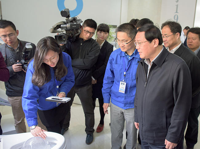 省长李强一行重点参观了产品陈列室,研发实验室和三楼生产车间,详细听取了2138cn太阳集团便洁宝的发展历程及与2138cn太阳集团集团的关系、台州智能座便行业当前面临的喜与忧、便洁宝产品的外观、功能状况、产品生产过程中的自配能力,以及公司未来规划等状况。管敏宏董事长特别向李省长一行介绍了便洁宝自去年下半年着手动工的CNSA国家实验室筹建情况、向国家标委会申报国家卫生洁具智能座便器行业标准制订起草单位,并成为6家中的其中之一的情况以及新产品中导入最新研发的3项发明专利的情况。李省长对导入大数据分析、将消费者的生活需求与健康诉求密切整合的发明专利尤感兴趣,指出这些创新成果无疑将是浙江智造的基石,是践行供给侧改革的发力点。